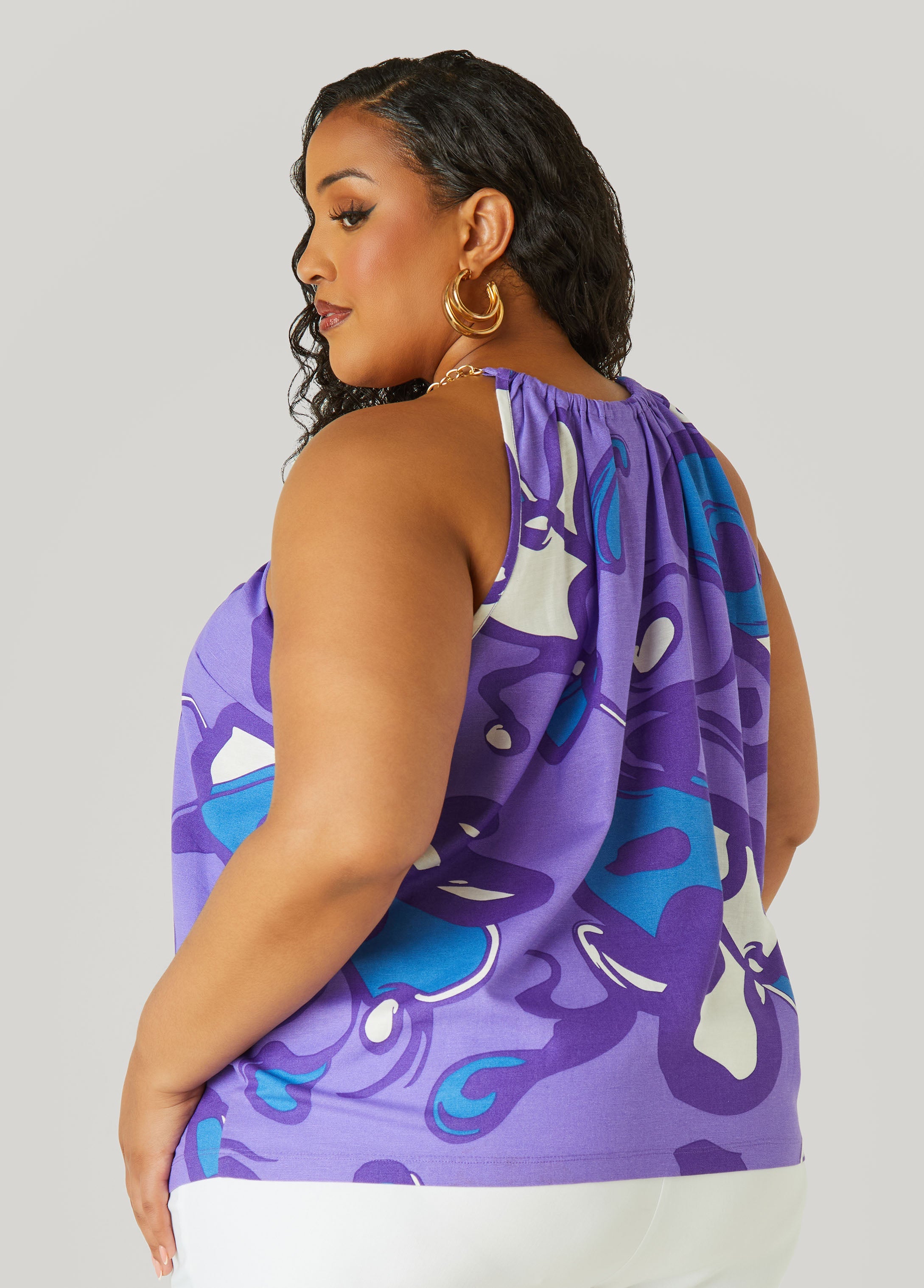 Plus Size Printed Chain Trimmed Top