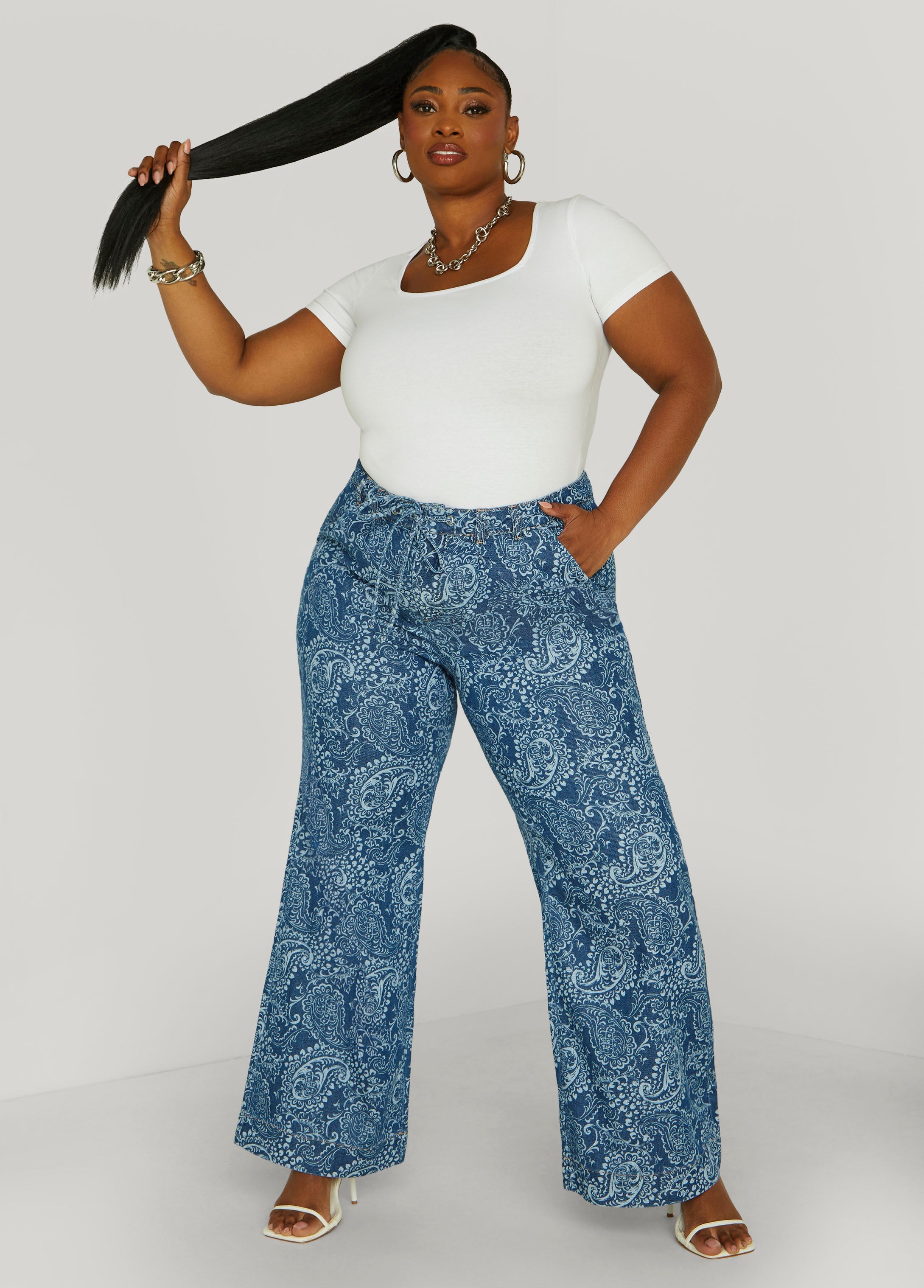 Who said jeans can’t be extra? These high-rise straight legs show up loud and proud in a paisley print with a drawstring waist that says comfort’s still king. Toss ’em on, strut it out & let these pants cause a little chaos.