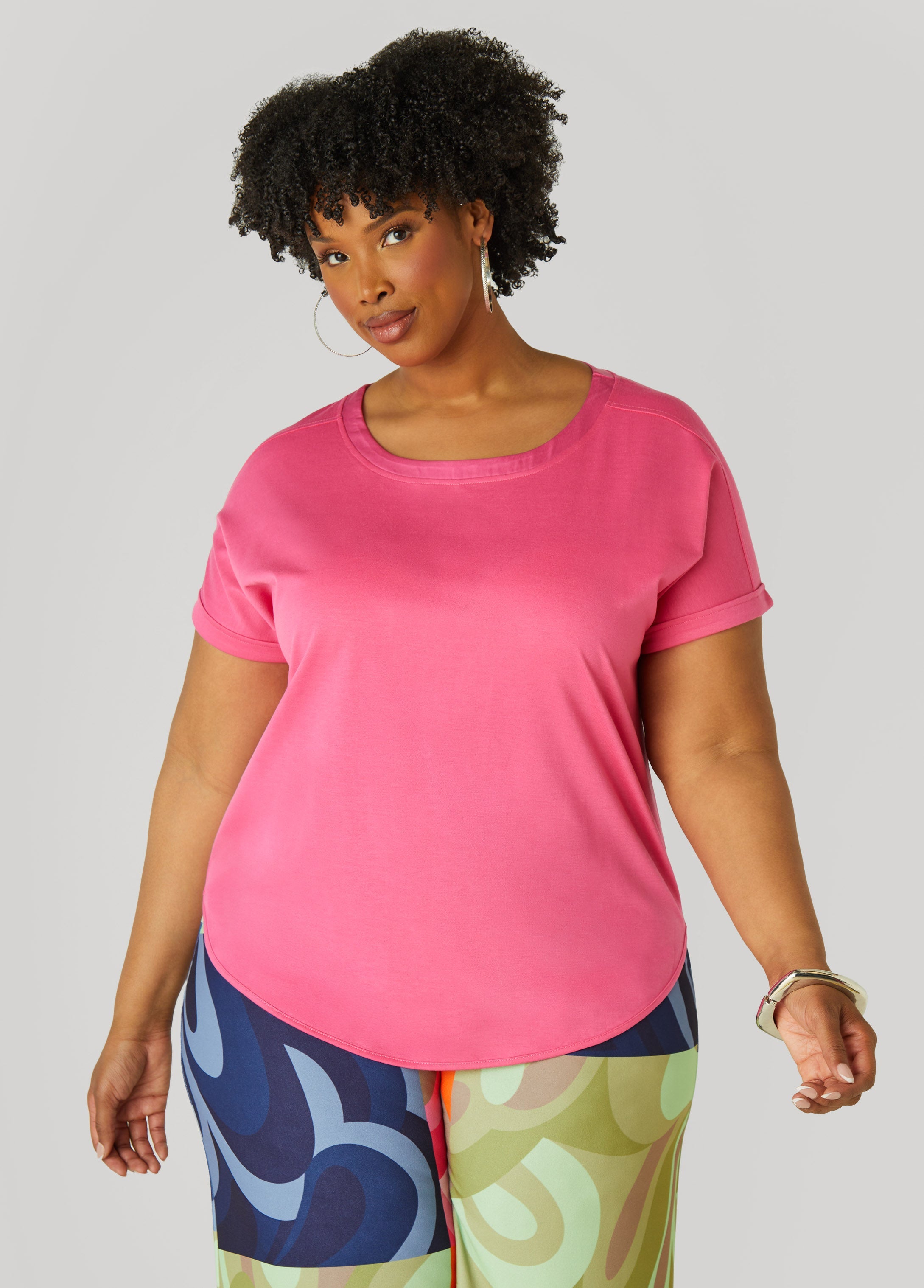 Our French terry tee features a relaxed, box fit, casually cuffed sleeves & a dash of glam along the satin trims.