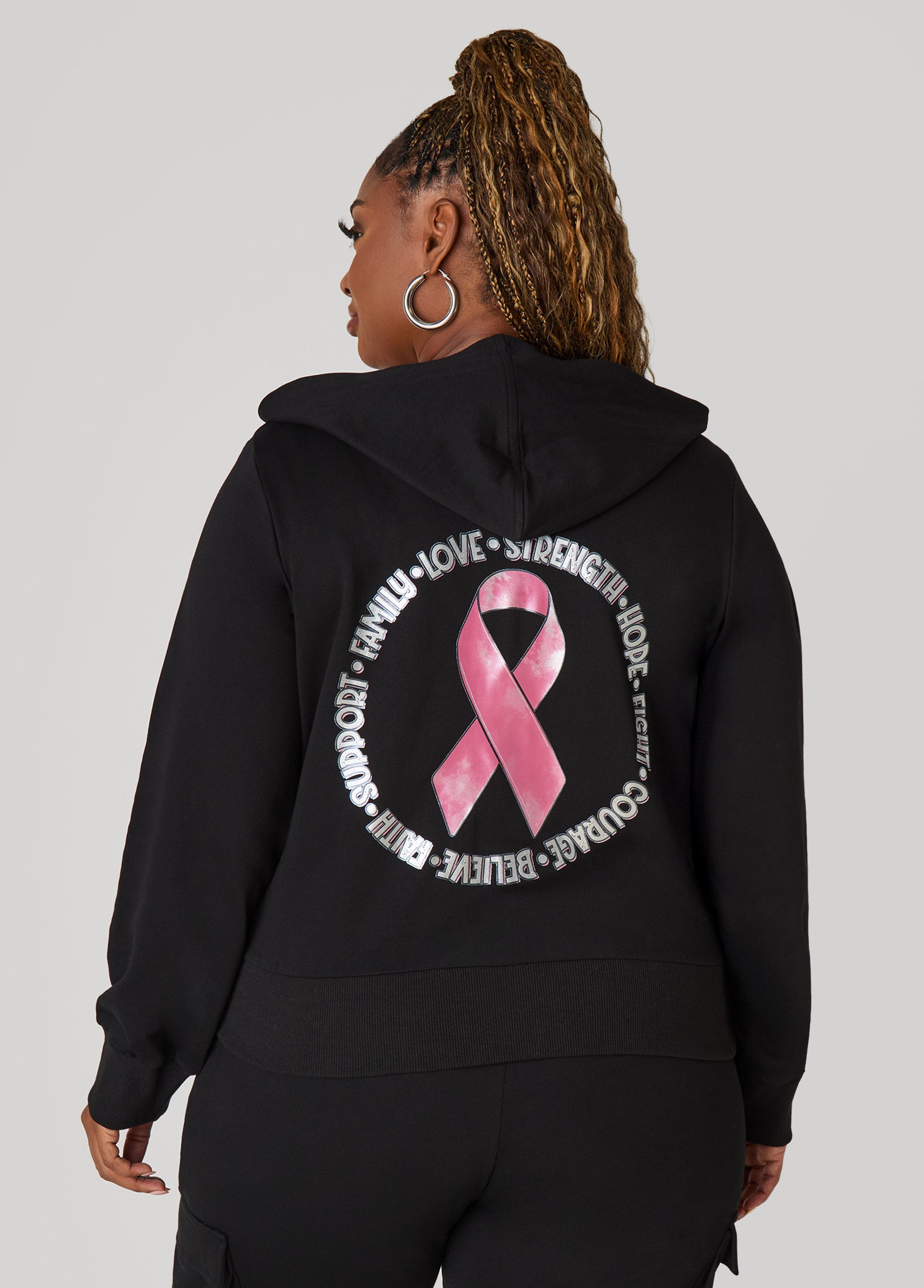 A symbol of strength wrapped in softness. This French terry hoodie shimmers with a crystal-embellished zipper and a pink ribbon graphic encircled by words of love, hope, and courage. Wear it with the matching joggers for a set that carries meaning with every step.