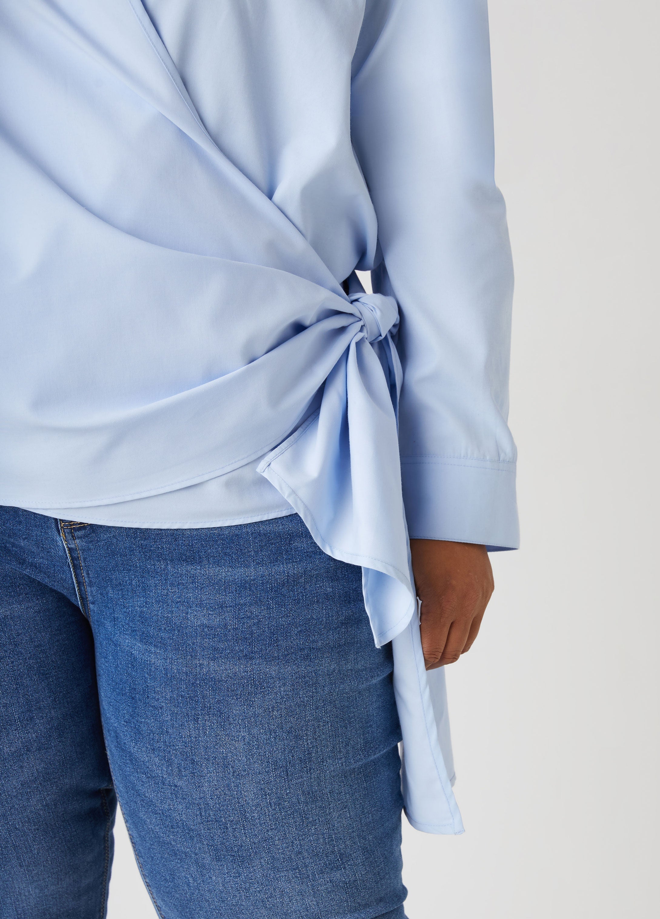 A timeless wardrobe essential, this cotton-blend poplin wrap shirt is classically chic. Featuring button-fastening sleeve cuffs and elegant tie fastenings at the waist, it creates a polished silhouette that’s perfect for both workdays and refined evenings.