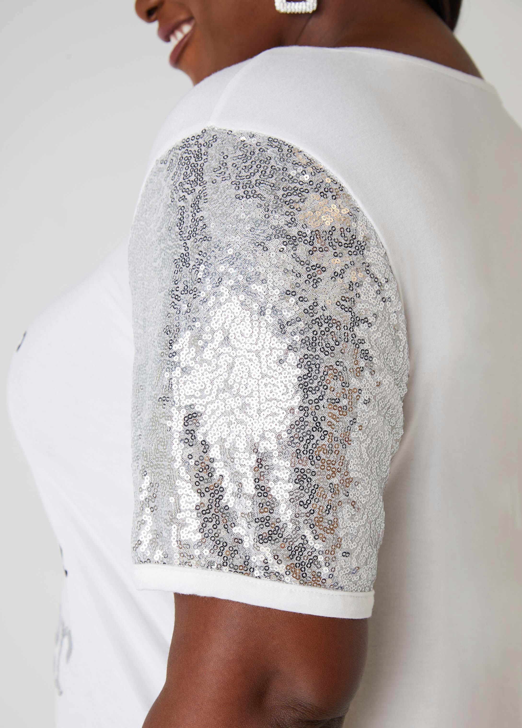 Show off your sparkle & wisdom with the "It’s Not White Hair, It’s Wisdom Glitter" tee! This fun stretch-knit style features a playful graphic adorned with sequins matched with the mesh sleeve panels for a little glam on the casual design. Wear your wisdom with pride and a little extra shine!