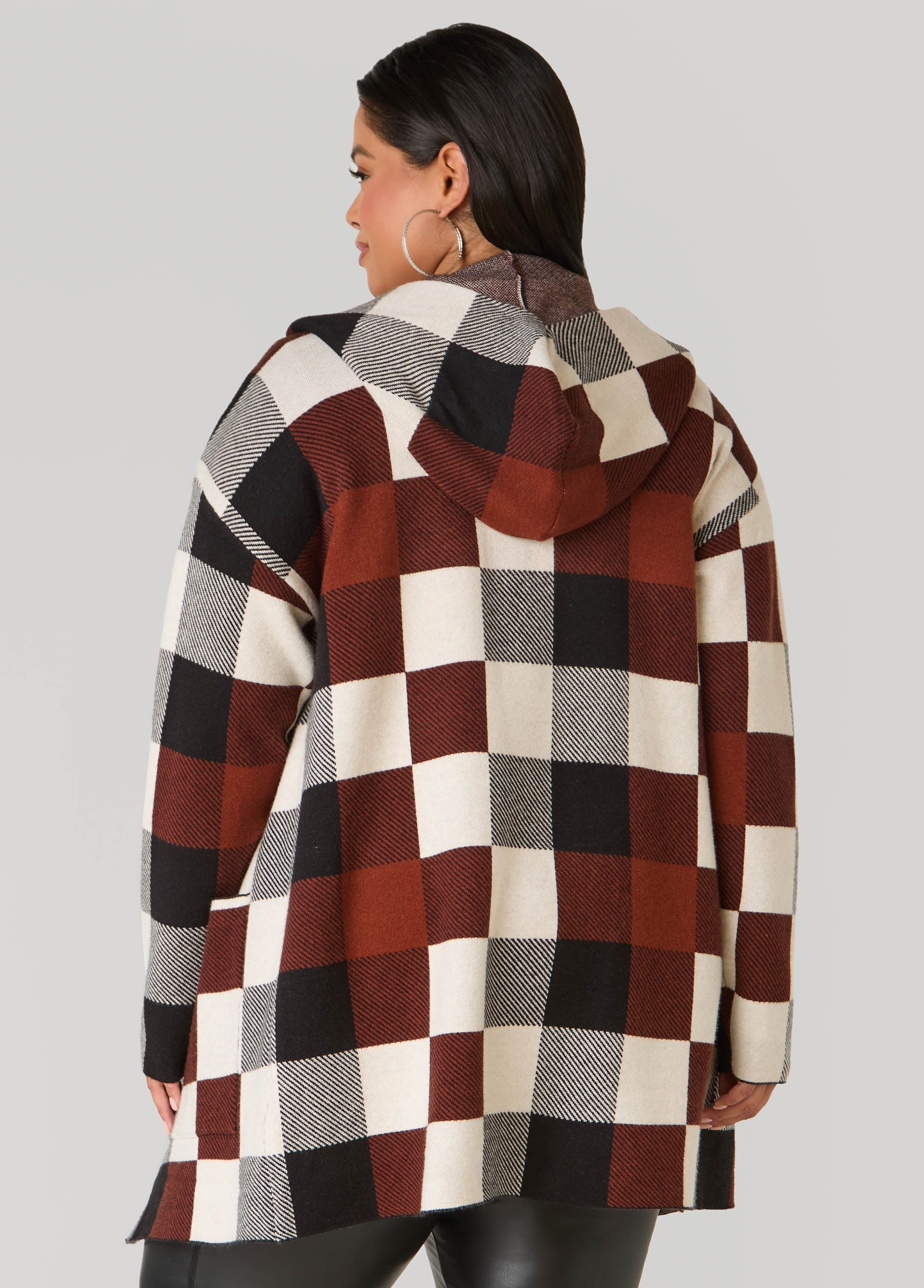 Cozy gets a cool upgrade with plaid intarsia knit, hood for hiding from responsibilities and pockets perfect for stashing snacks & secrets.