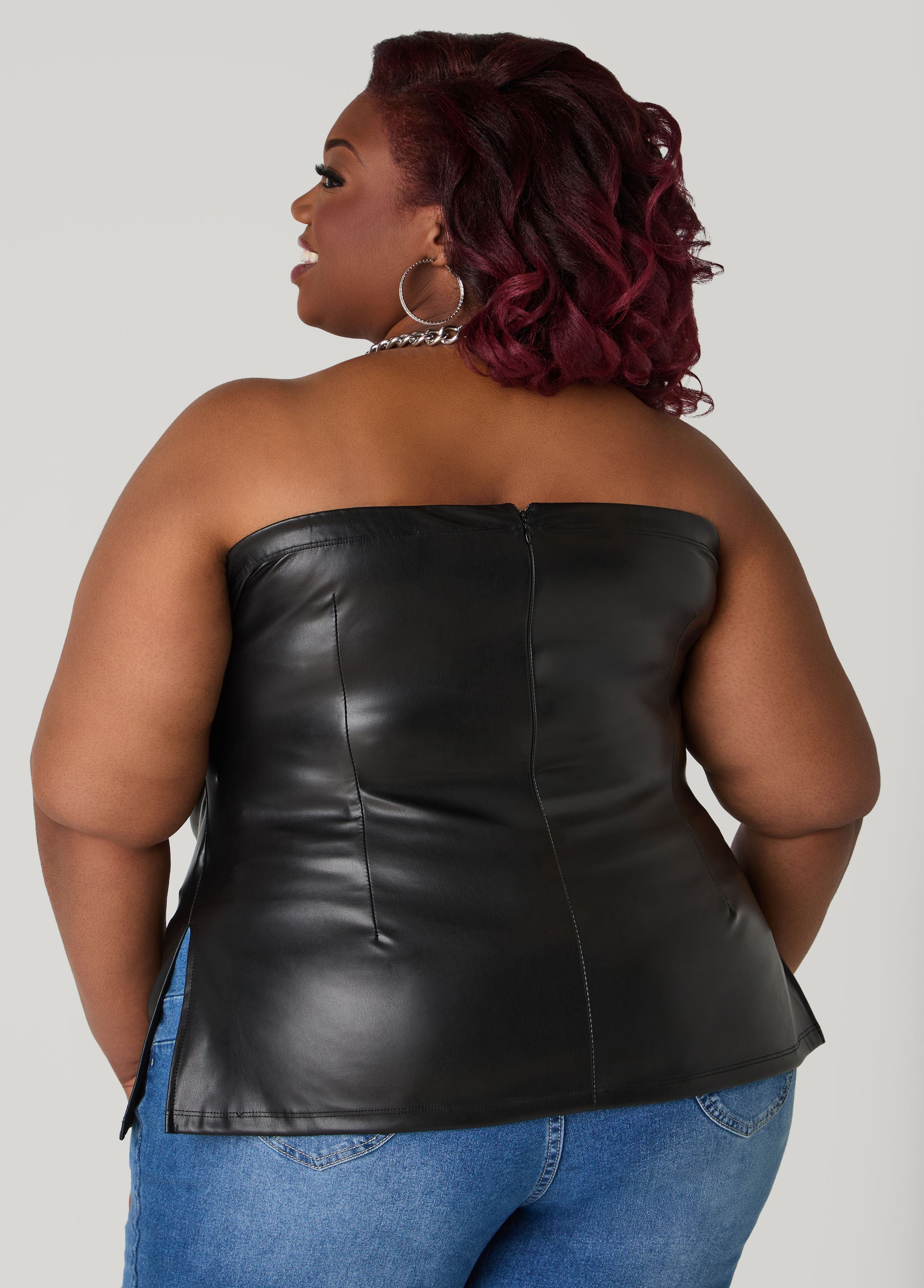 Faux leather gets flirty with ruched sides, an elasticized bustline and daring side splits on our sexy tube top.