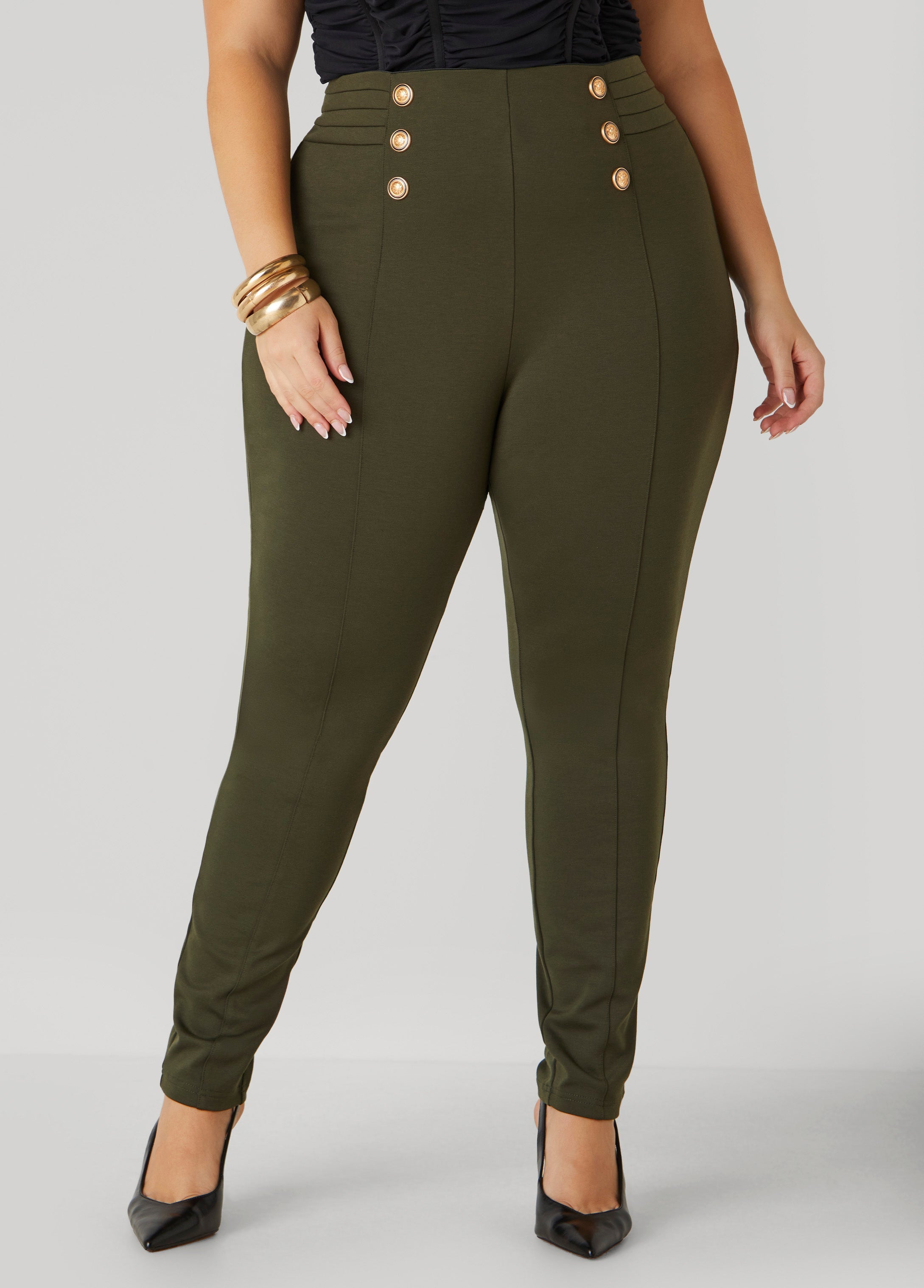 Legs for days & details that just right. These high-rise ponte leggings serve up a sleek fit with pleated accents and sailor-inspired buttons that flirt without trying.