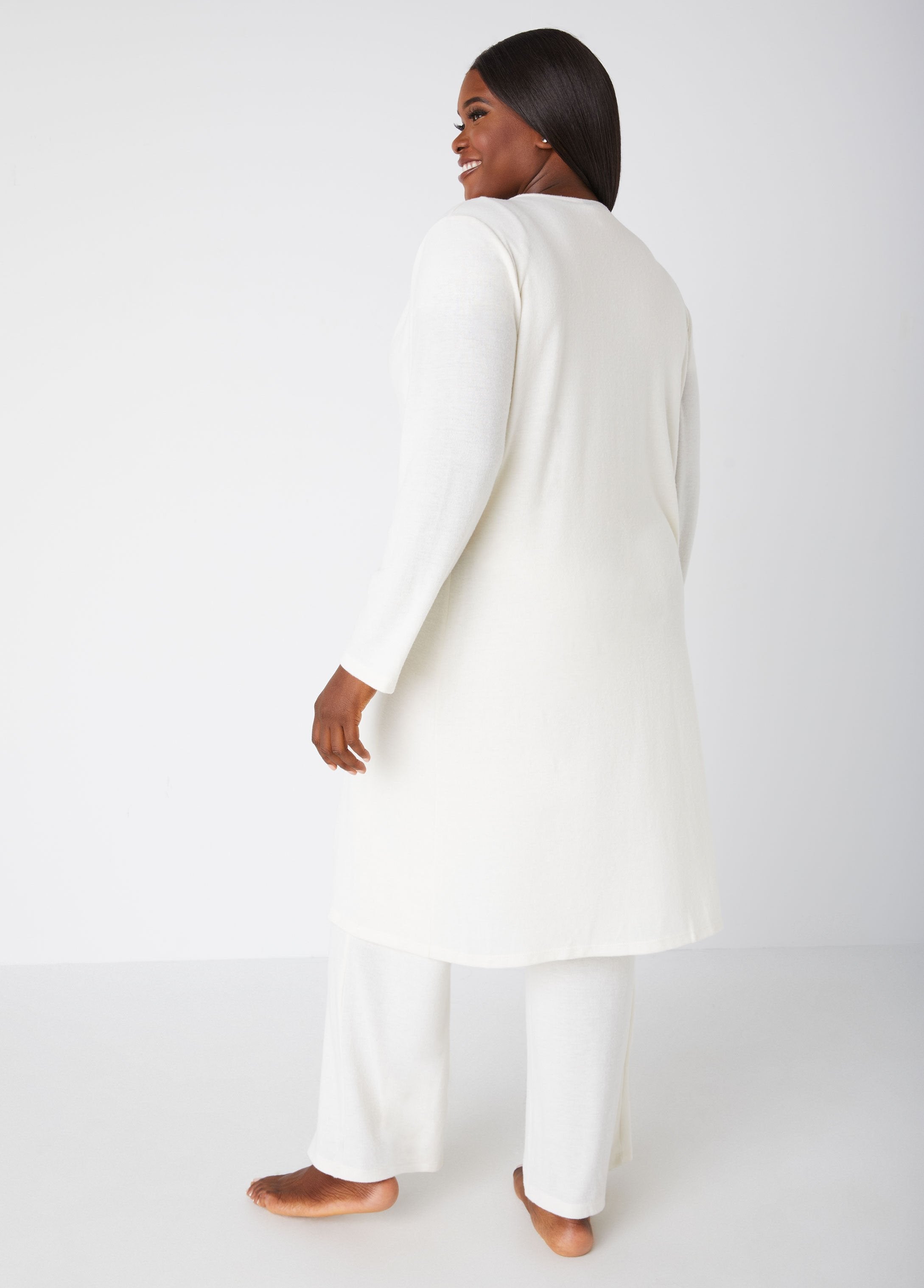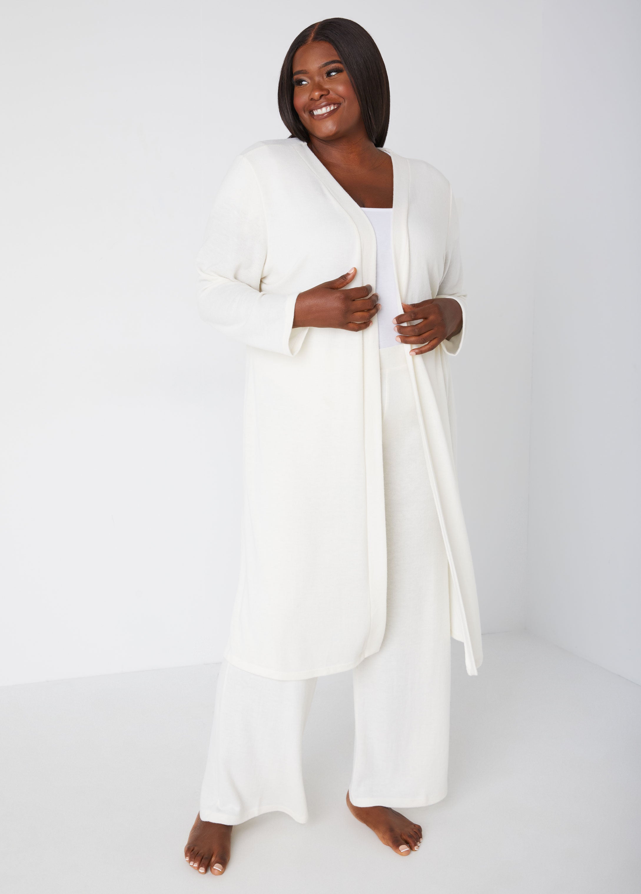 Wrap yourself in comfort with this brushed lounge duster, featuring an open front for effortless layering. Perfect for lounging in style, it pairs beautifully with the matching pants for a cozy, coordinated set.