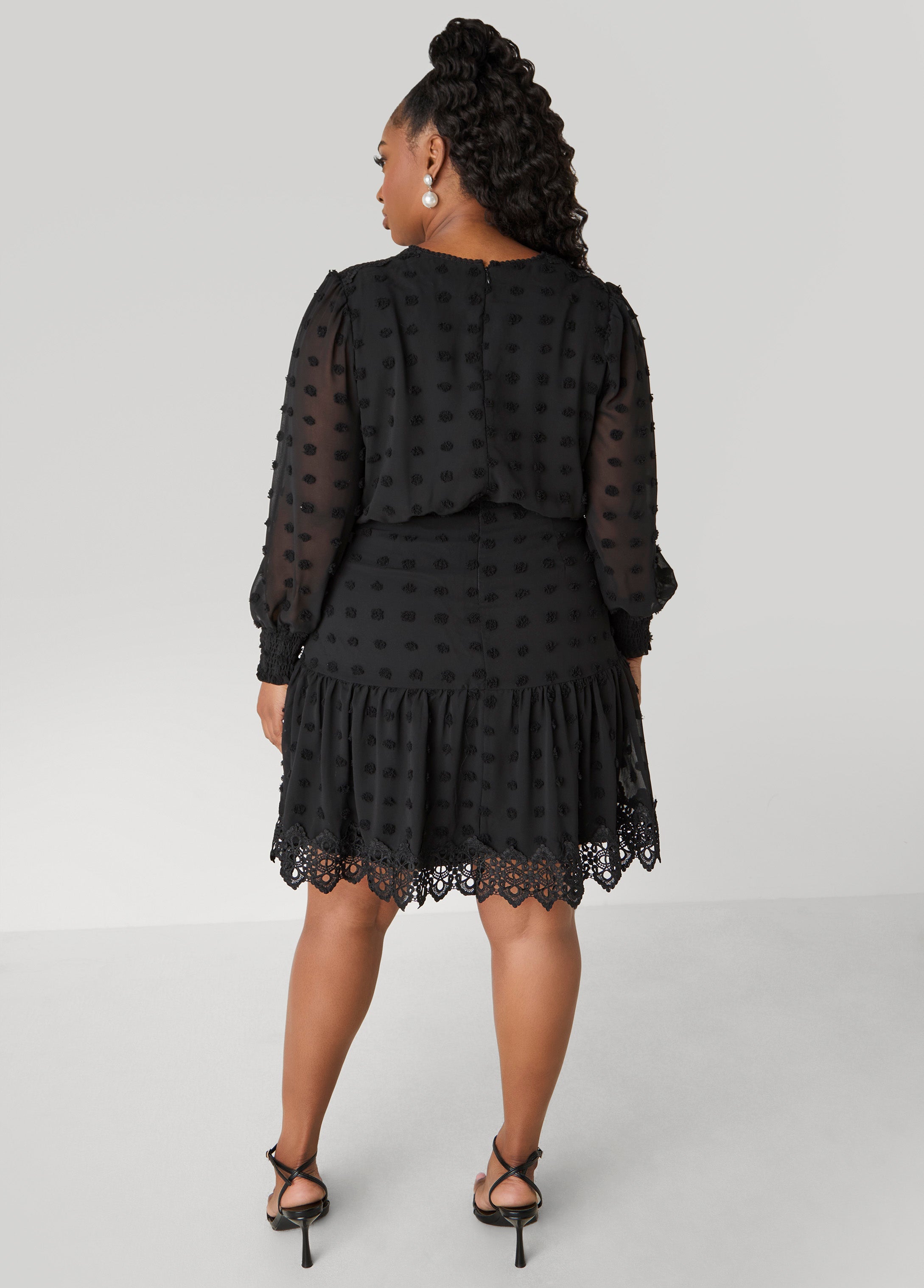 Light, floaty & full of fun, this chiffon dress goes all in with pom poms, shirred cuffs and crochet trims that add just the right touch of texture.