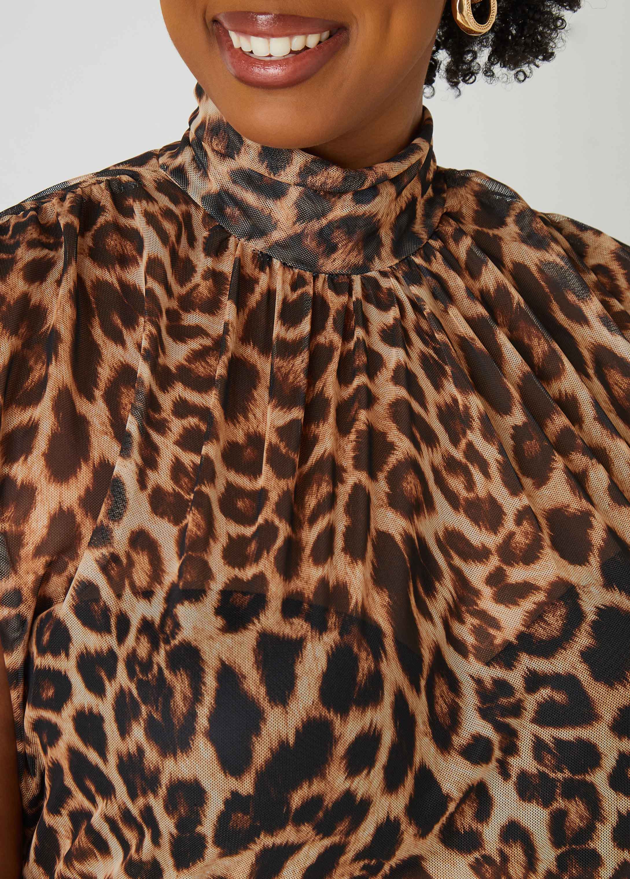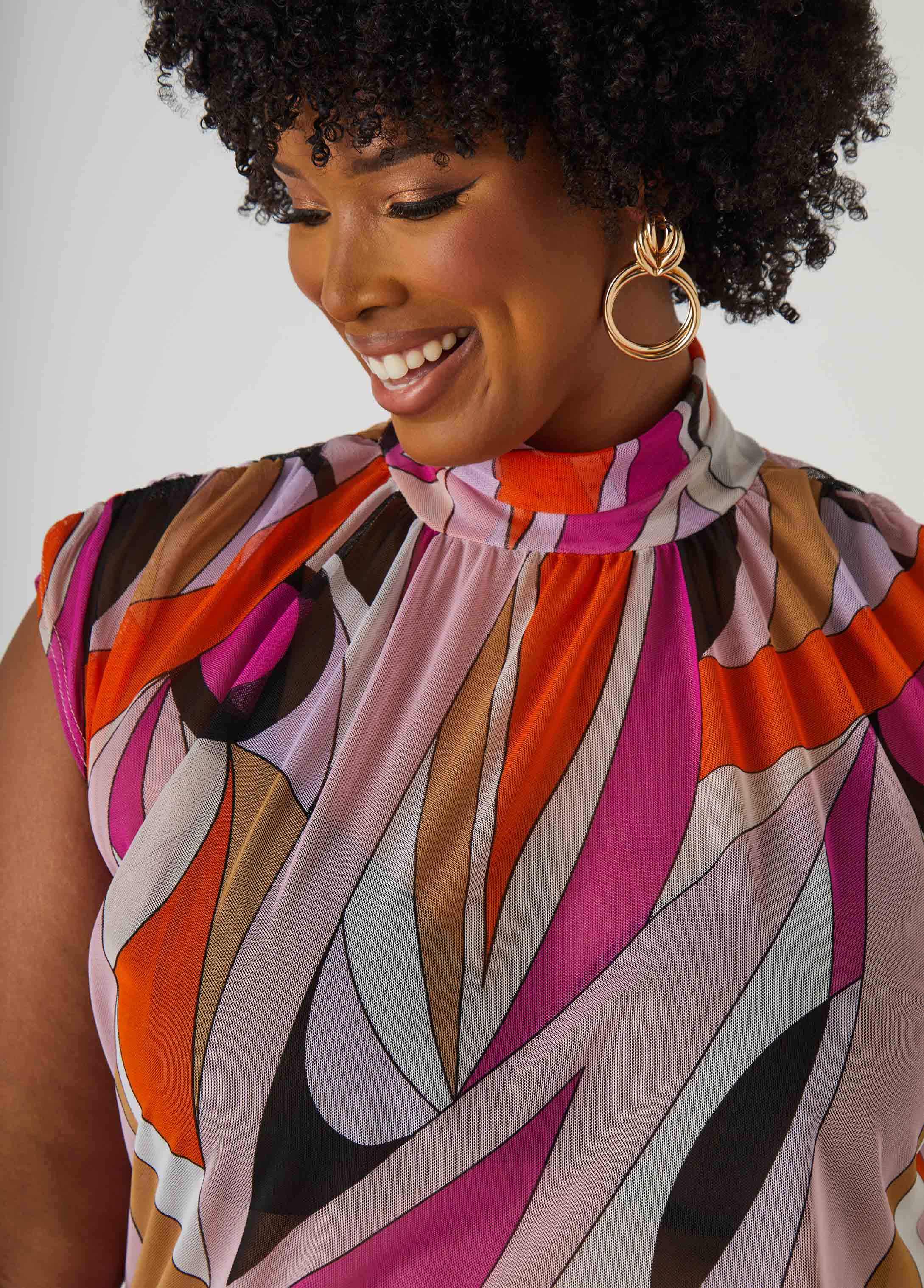 Serve looks with zero effort in this printed stretch-mesh top. Featuring a gathered mock neckline and a second-skin fit, it’s giving bold, edgy, and just the right amount of mystery.