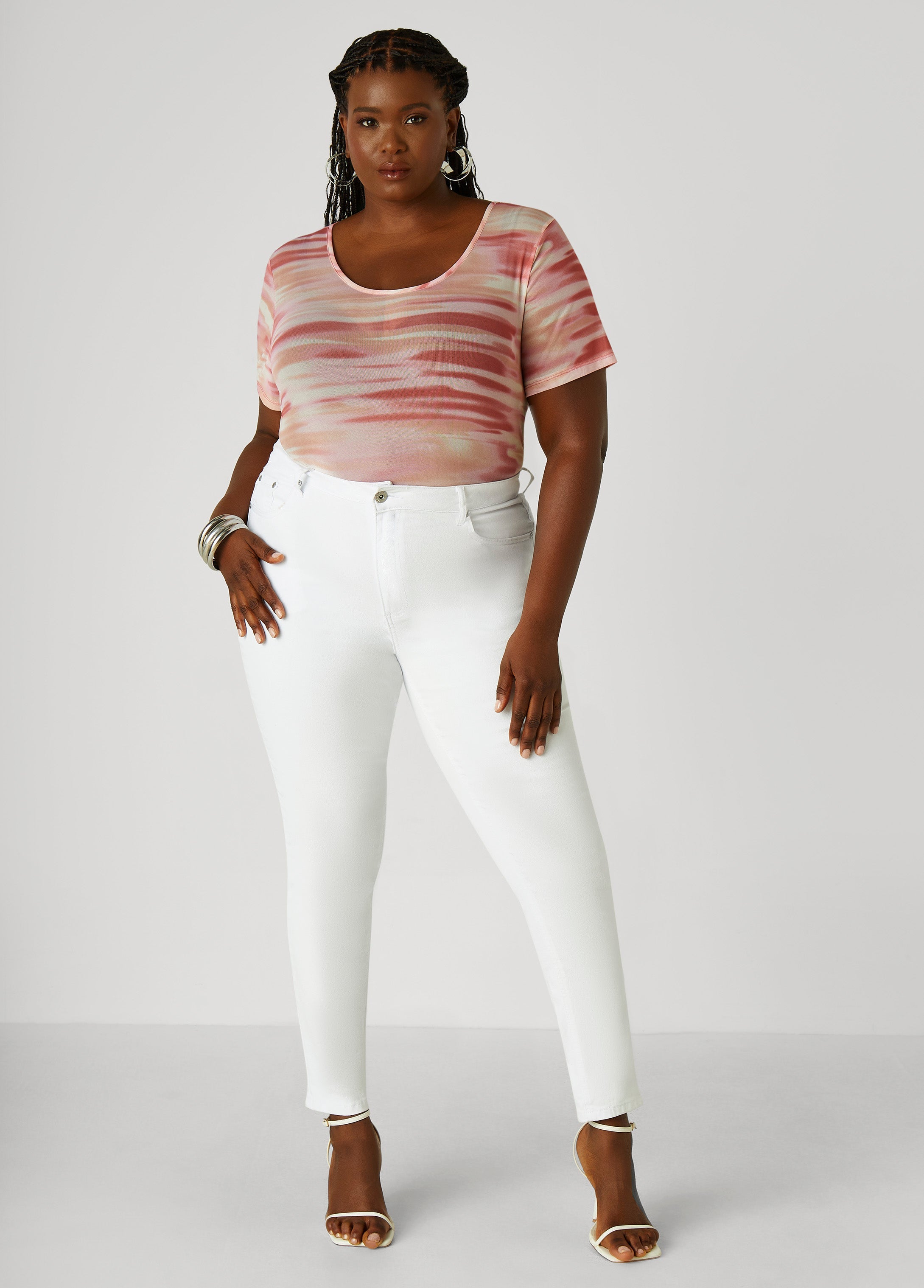 This mesh tee is covered in a print that's ready to party! Unlined & unapologetic, it brings the sheer and lets you style it however you want.