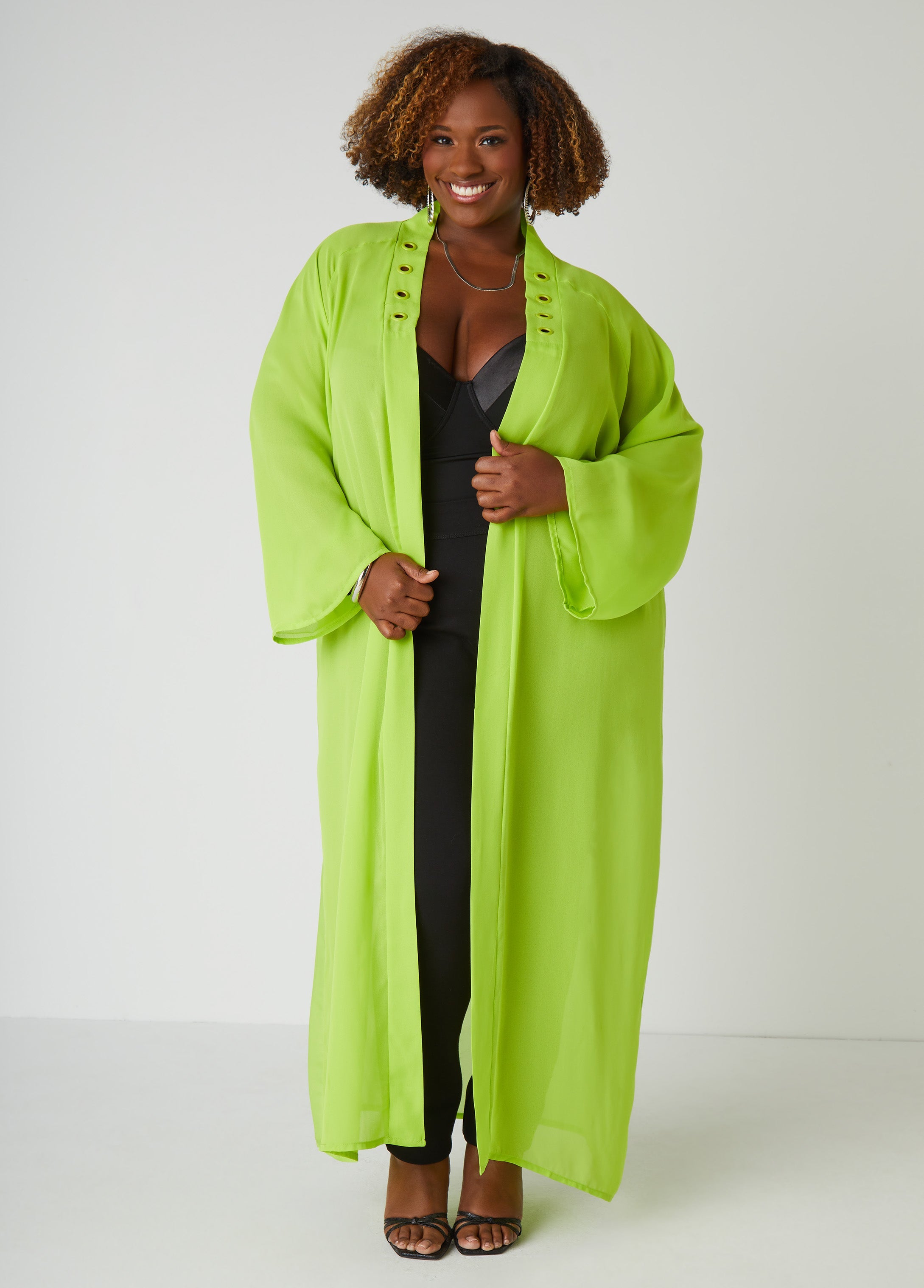 Serving power, presence & a whole lot of main character energy—the "Tribe" duster from Pardon My Fro™ is that piece. Flowing crepe fabric, statement coated grommets & an open front for effortless drape. But the real moment? The fab graphic featuring a fierce crew dressed in all black. Because when you step out, your tribe moves with you. This duster is part of a special collaboration with brand Pardon My Fro™.