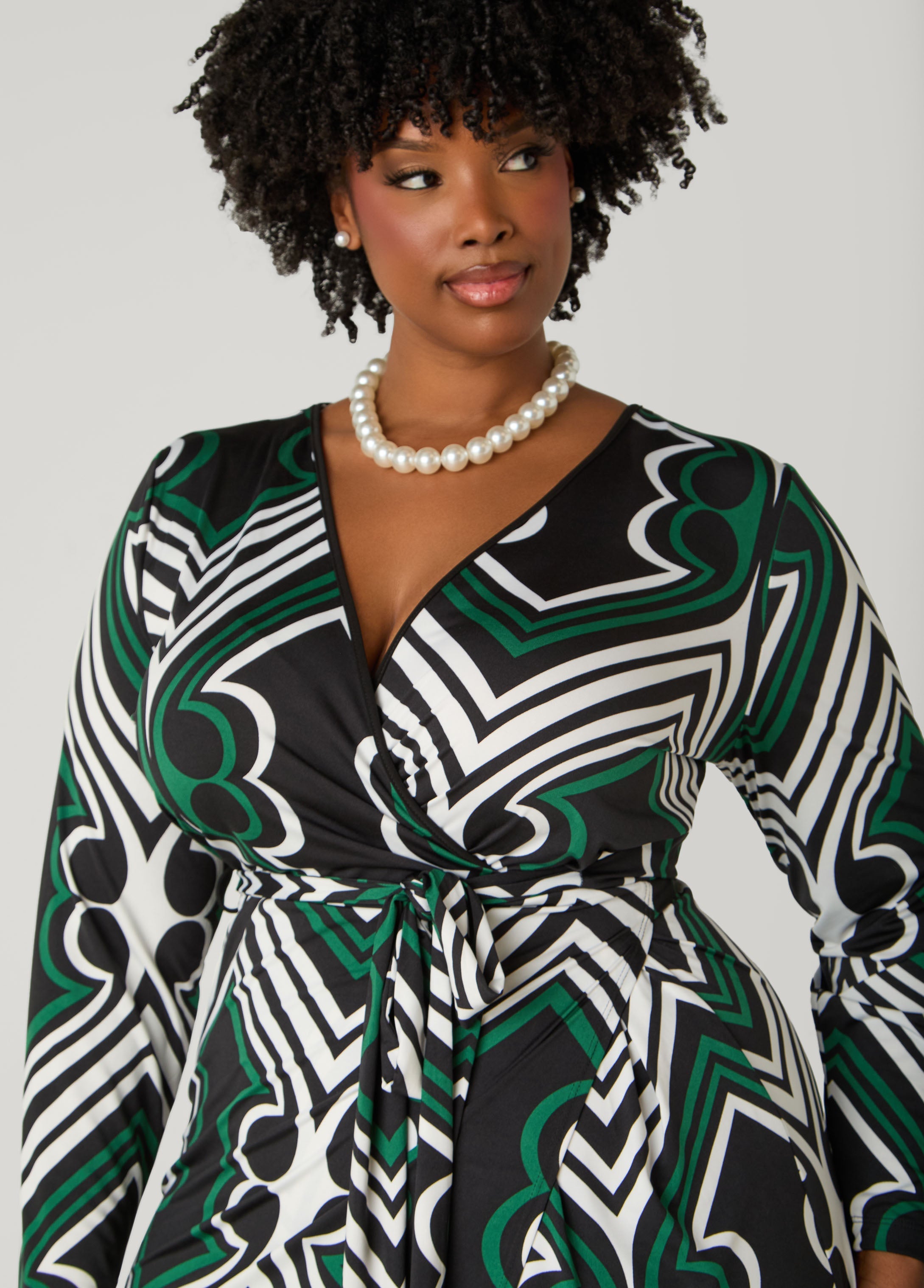 Printed stretch-knit wrap dress with easygoing charm and a flirty finish. Tie it up and head out because cute comes easy.