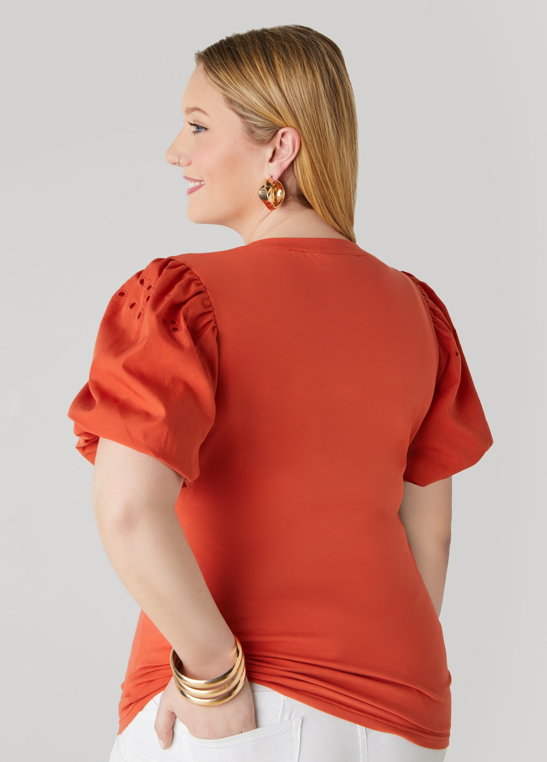 We remix a wardrobe classic with this stretch-cotton jersey tee framed by embroidered poplin puff sleeves.