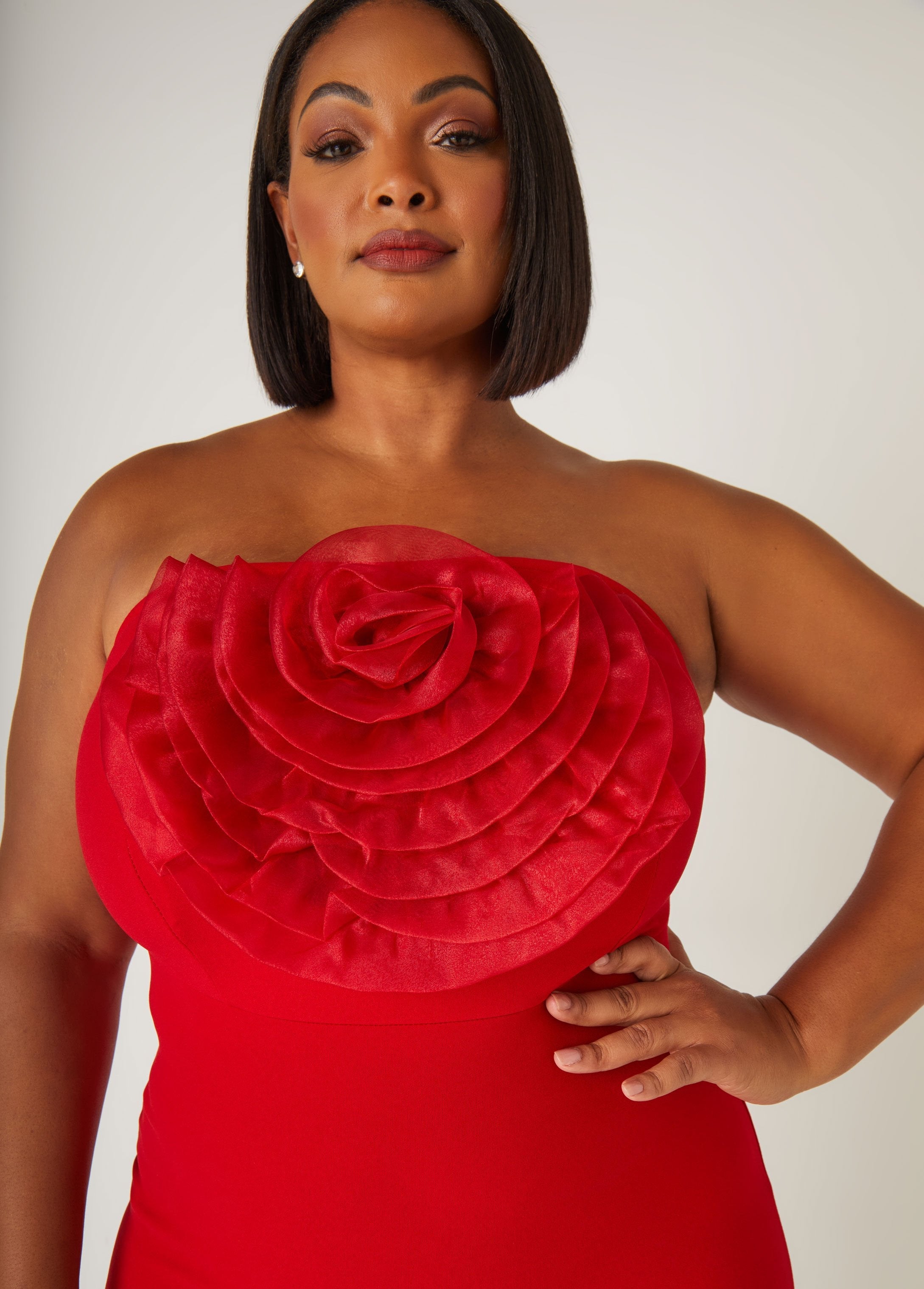 Get ready to turn heads this holiday season in this strapless stretch-crepe bodycon dress! The oversized organza rosette embellishment adds a festive, glamorous touch, perfect for making a bold entrance. With concealed hook and zip fastenings at the back, this stunning piece ensures a sleek, form-fitting silhouette. Step into the holiday magic with confidence and style! This dress is part of our limited-edition holiday collection.