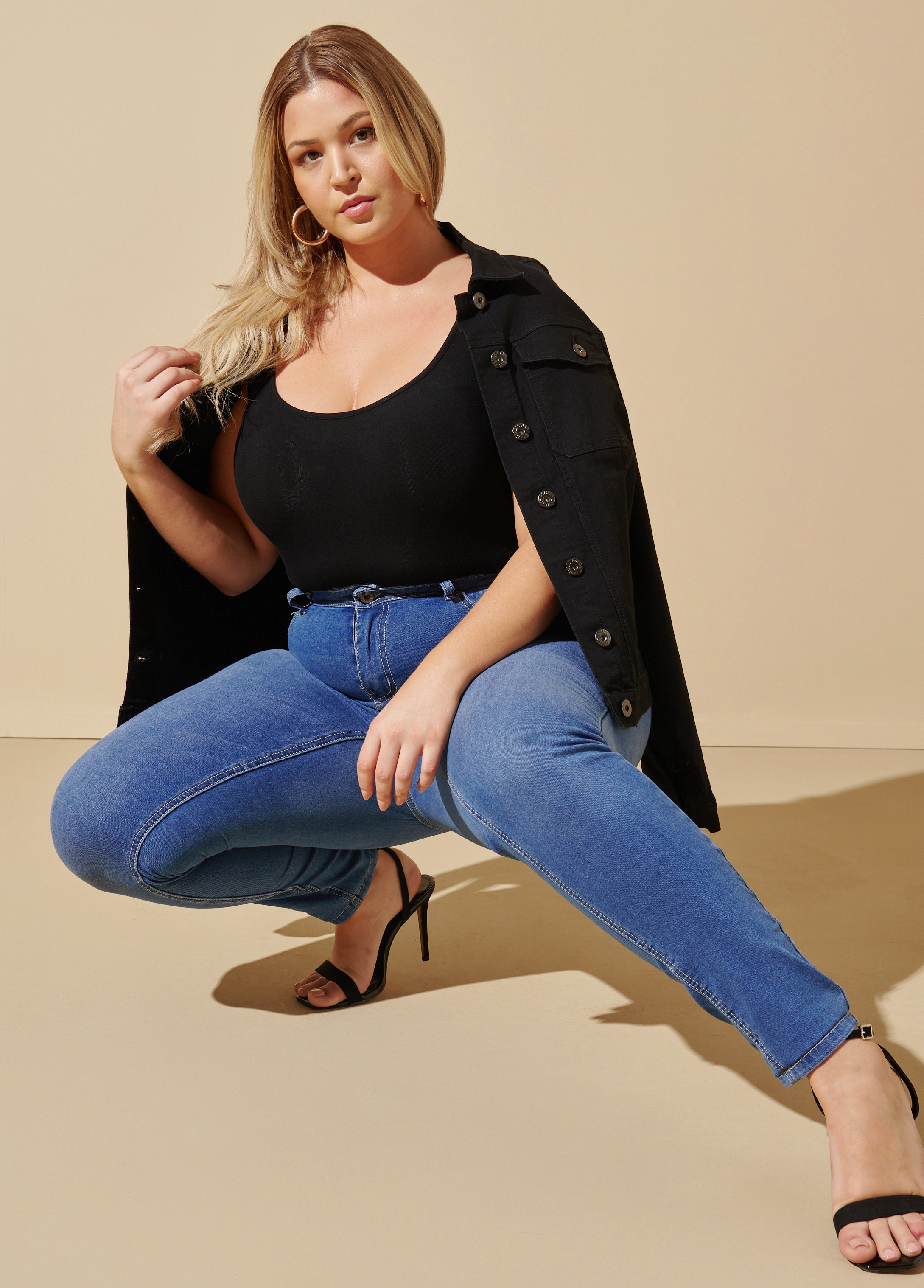 Fearless will be an understatement when you slip into my new skinny jeans. The high-waist and two-button feature creates the ultimate smoothing effect and the stitching throughout perfectly contours all your curves. They are available in short, regular and tall lengths.