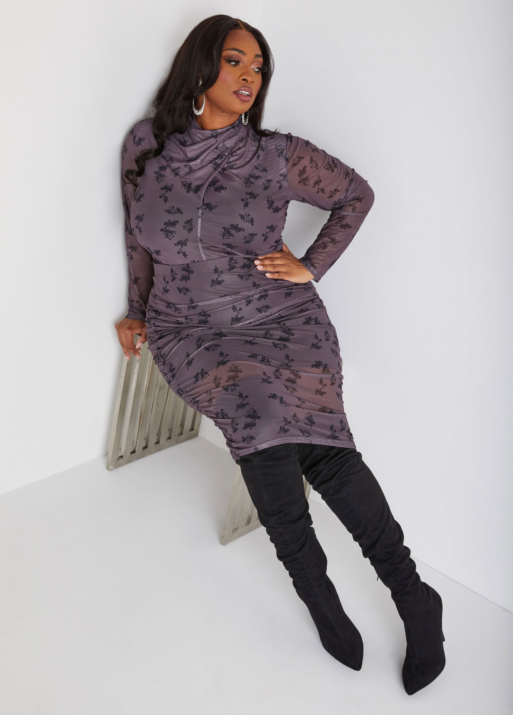 Make a statement this season with this floral print stretch-mesh skirt, featuring elegant side ruching and a comfortable elasticized waistband. The partially lined stretch-knit design offers just the right amount of coverage, while the slip-on style makes it an effortless choice for any festive occasion. Pair it with a sleek top for a look that’s both chic and celebratory.