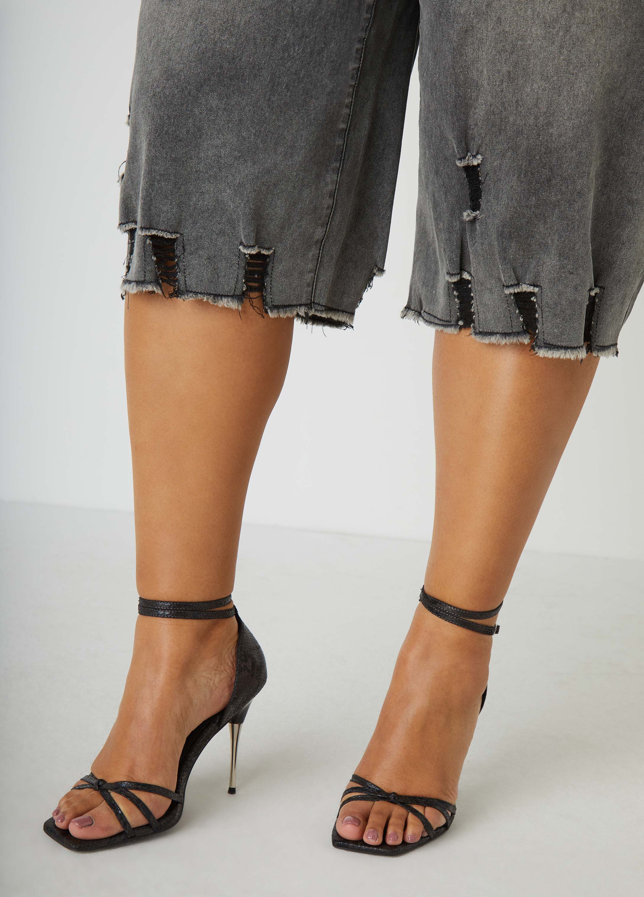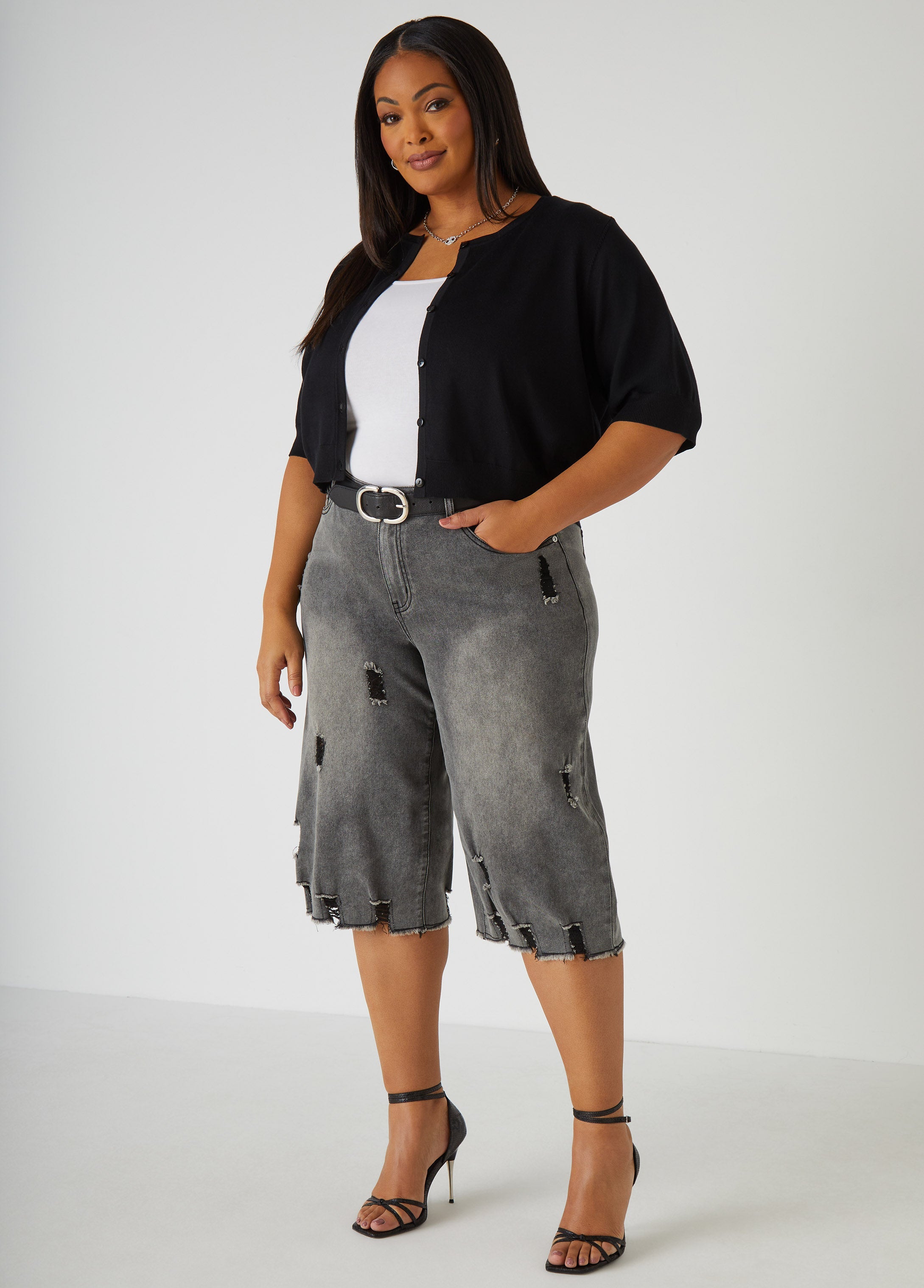 Outside is calling & it's a must you answer! Step outside in these stretch-denim capris featuring distressing from waist to hem.