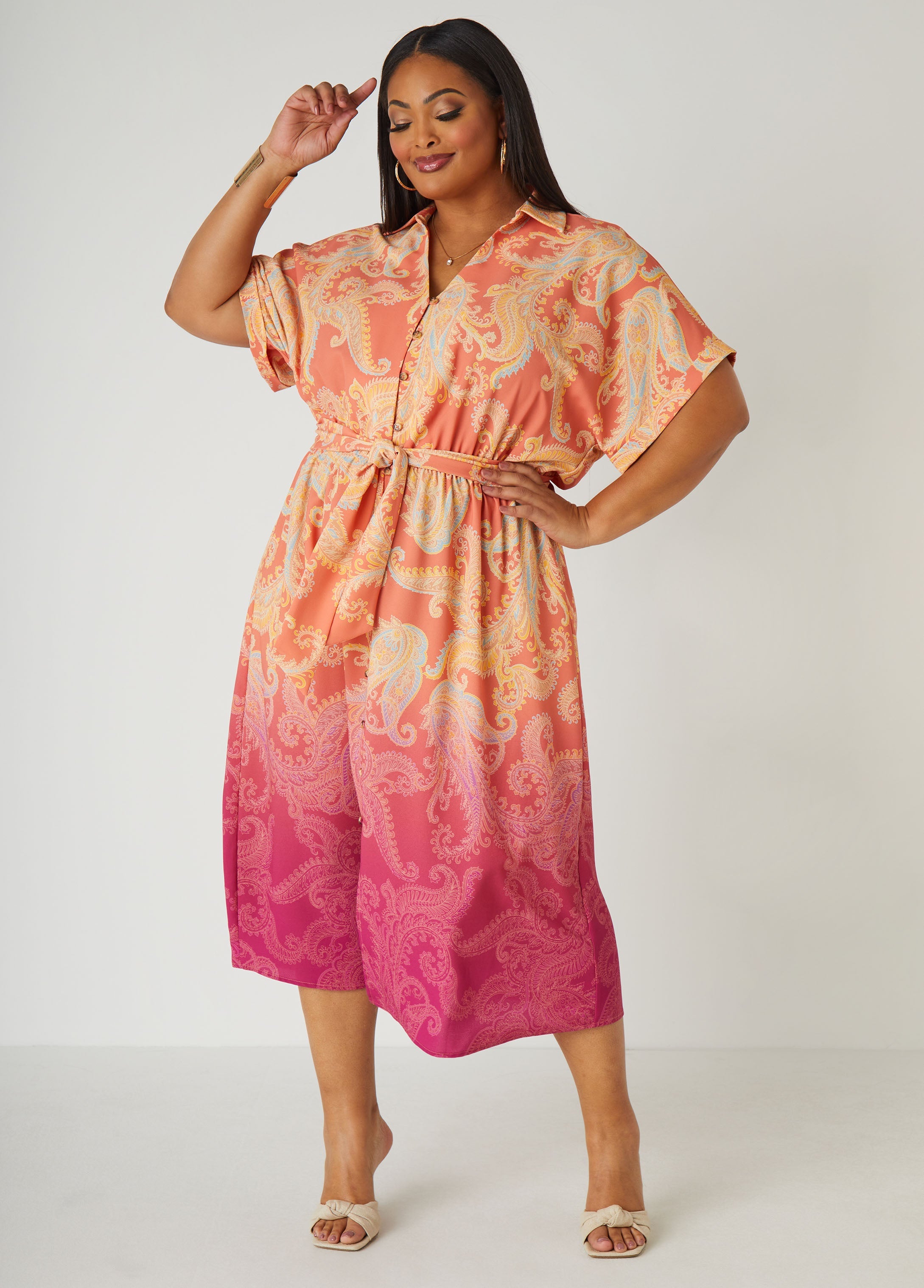 Sundress season is quickly approaching & this ombré paisley shirtdress polished yet casual featuring cuffed sleeves & flattering sash ties. Lightweight and easy to wear, it’s the perfect piece for warm afternoons and golden-hour strolls.