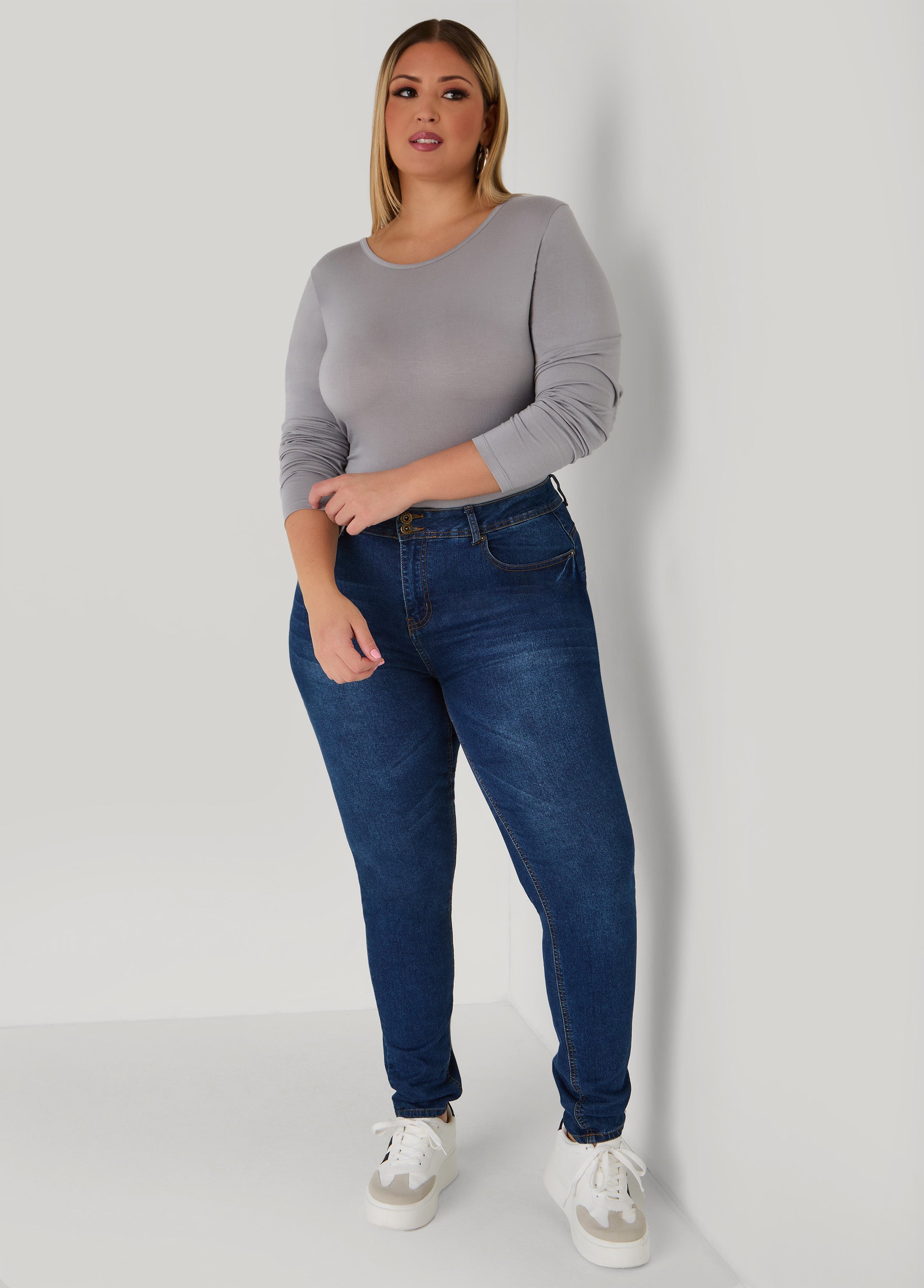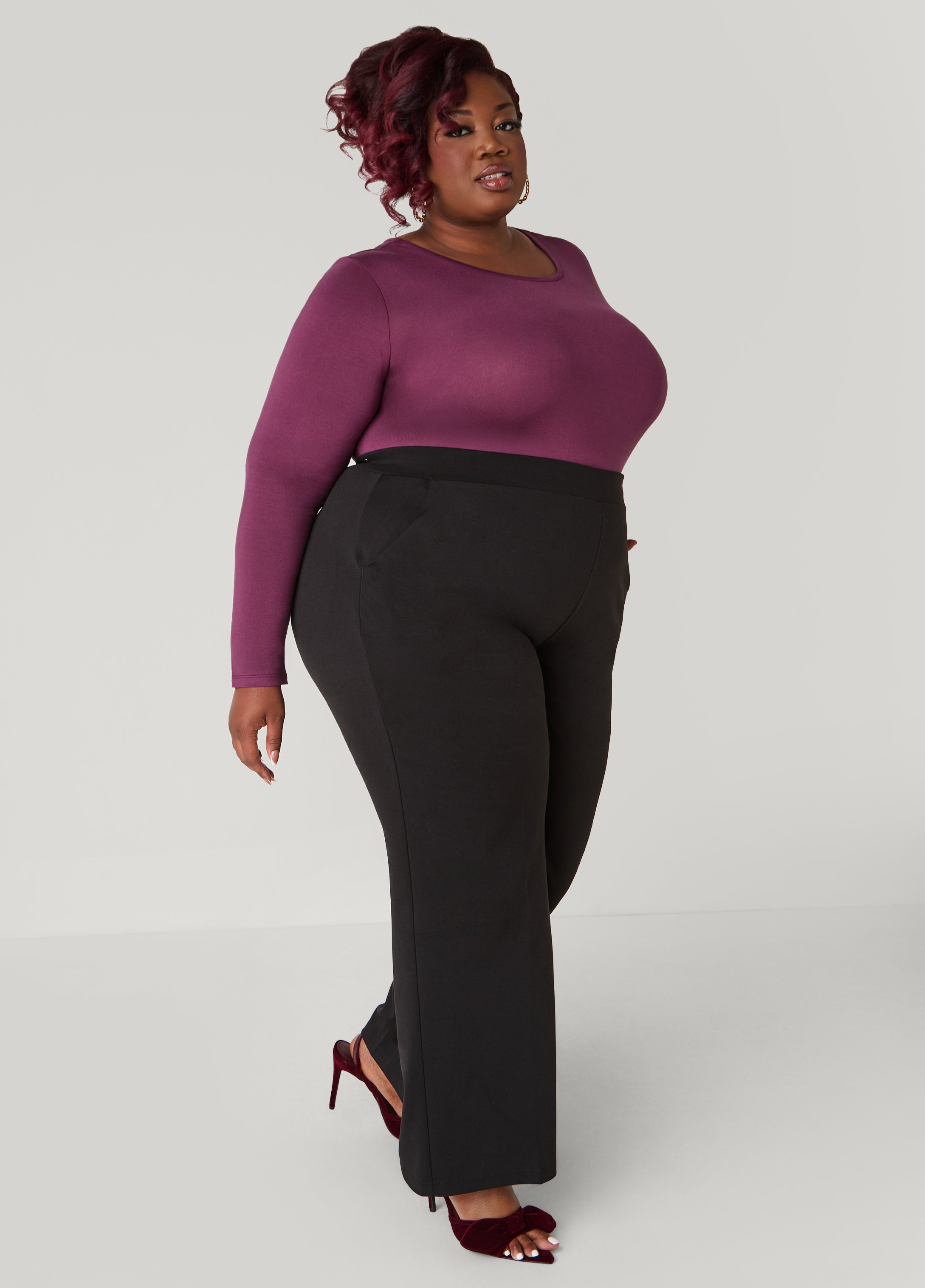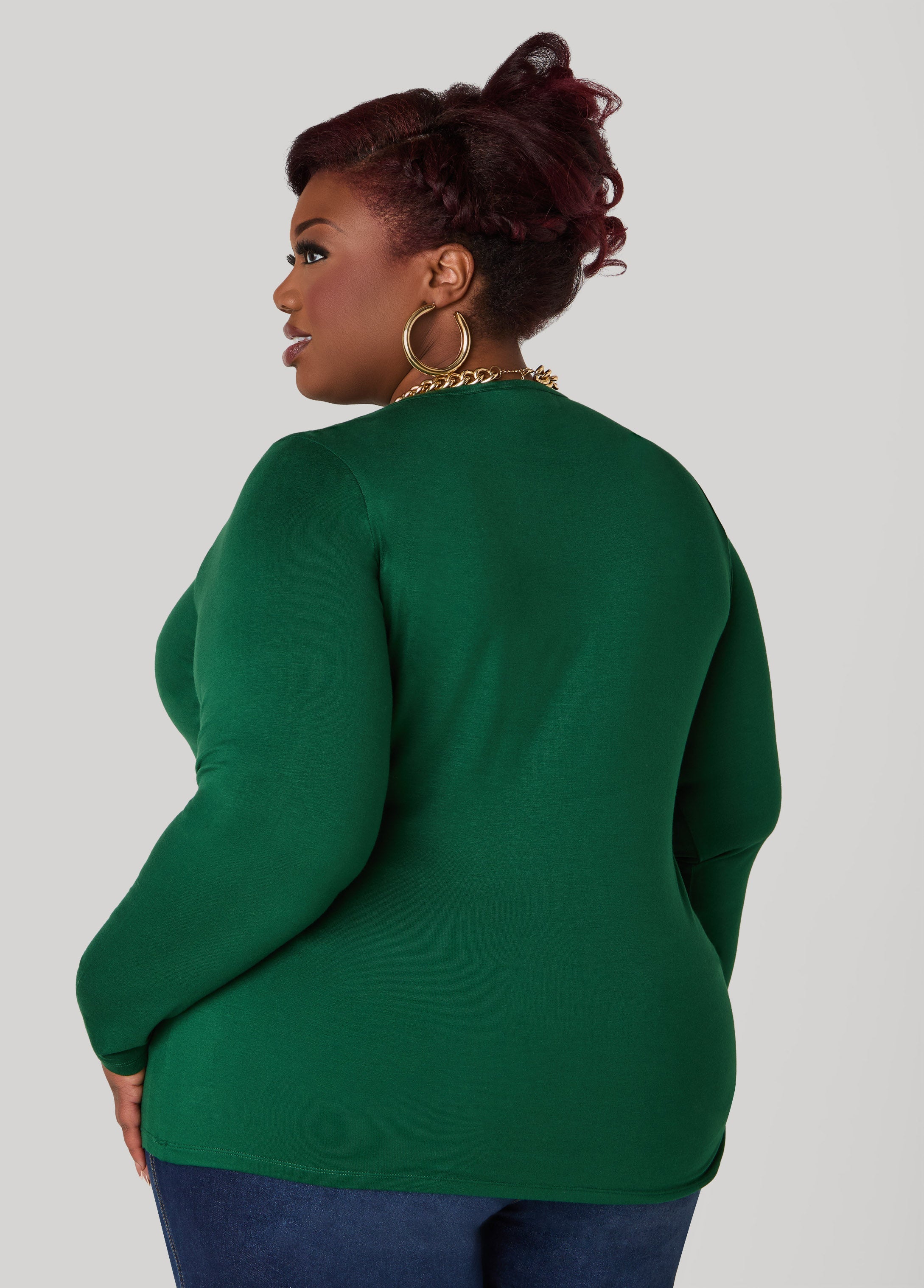 Get back to the basics with Ashley Stewart's collection of long sleeves Basic tees. This stretchy style gets everything right, from the relaxed fit to its versatility.