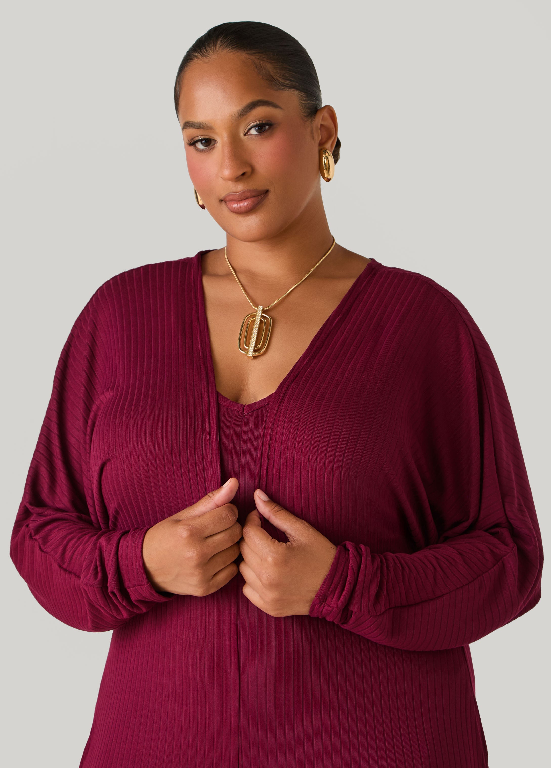 Slip on this ribbed-knit bolero with an open front and instantly elevate the matching jumpsuit into a polished two-piece set.