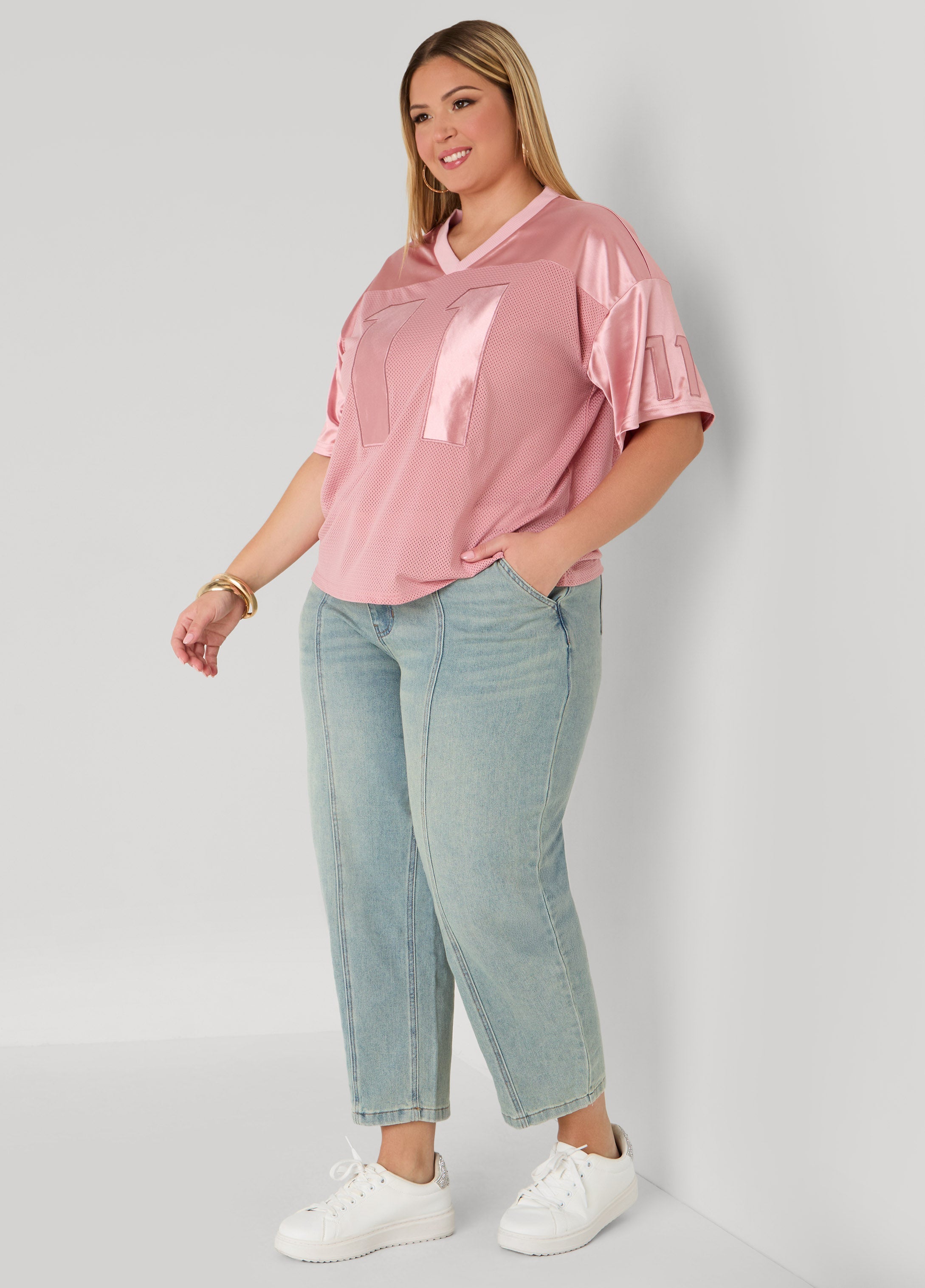 Root for your OWN team in this pretty sporty tee designed in stretchy satin & mesh with a lucky No. 11 on the front!